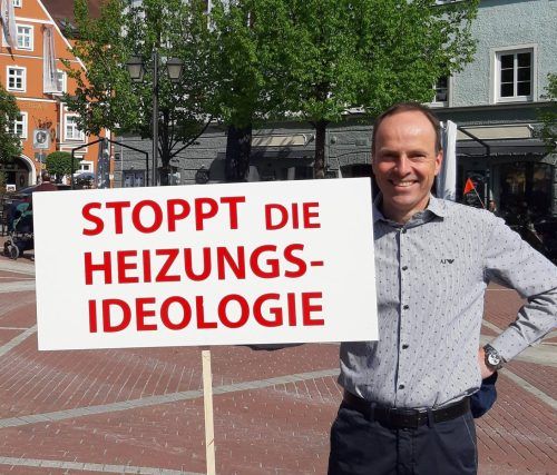 Erding – Franz Widmann ist Optikermeister in Erding. Vor einer Woche hat er sich schon einmal mit einem Schild in die Altstadt gestellt. „Stoppt die Heizungsideologie“, stand darauf – es blieb bei einer Ein-Mann-Demo, mit reichlich Zuspruch von Passanten. Die Erdinger Ausgabe unsere