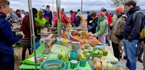 Der gestiegene Wasserpegel des Ammersees in den vergangenen Tagen kann dem internationalen Töpfermarkt in Dießen nichts anhaben: Auf der neugestalteten Seeanlage stellen bis Sonntag rund 160 Keramikwerkstätten aus 13 Ländern ihre Tonwerke aus. Bis zu 50 000 Besucher werden bis Sonntag zum Töpfermark