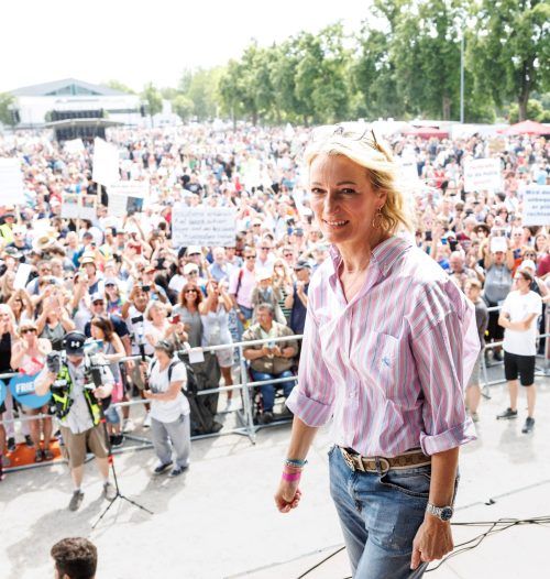 Erding – Wäre da nicht das kleine Schild samt Holzstil mit dem Titel „Stoppt die Heizungs-Ideologie“ auf der Bühne, man könnte fast meinen, man wäre auf einem Konzert-Festival gelandet. Menschenmassen strömen am Samstagmorgen unter weiß-blauem Himmel auf den Volksfestplatz der Großen Kreisstadt Erdi