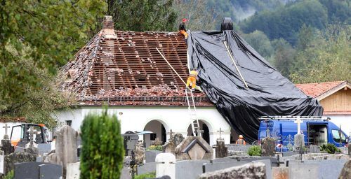 Umgestürzter Kran, abgedeckte Dächer und demolierte Fenster: Unwetter erschüttern Bayern