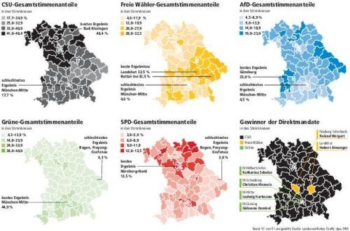 Wahlanalyse: CSU vor allem in Franken stark, FW in Niederbayern, Grüne in Oberbayern