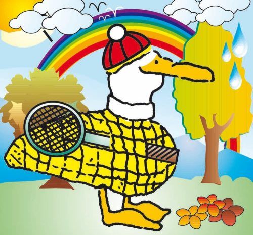 Lärm hallte aus Waldemars Bau, als Klara und ich ihn gestern besuchen kamen. „Oh nein, an was werkelt der Waschbär nur jetzt wieder herum?“, quakte ich. Schnell watschelten wir zum Eingang. Der Bau sah mehr aus wie eine Baustelle, überall lagen Werkzeuge, Kleber, Schnüre und Drähte herum – und mitte