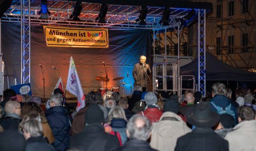 München – Vor 100 Jahren wurden an diesem Platz Adolf Hitler und seine schwer bewaffneten Gefolgsleute gestoppt. Gestern versammelten sich an dem geschichtsträchtigen Ort vor der Feldherrnhalle knapp 1000 Menschen, um ein Zeichen gegen Hass, Hetze und Antisemitismus zu setzen. Aufger