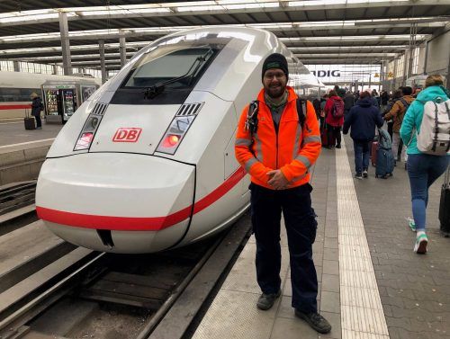 „Ich muss eigentlich erst mal ins Bett“ – Erik Großmann (39), Arbeitsschuhe, Cargohose, Mütze mit GewerkschaftsLogo, ist Lokführer bei DB Cargo. Der Münchner ist seit dem Jahr 2000 bei der Bahn, hat den „Eisenbahner im Betriebsdienst“ von der Pike auf gelernt. Er fuhr zwischendurch vier Jahre S-Bahn