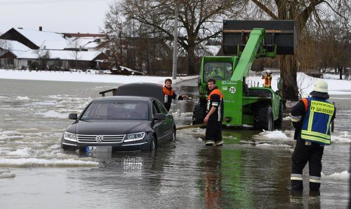 München – Augen zu und durch: In Vilsbiburg im Kreis Landshut hat ein Autofahrer am Sonntagvormittag eine Vollsperre wegen der Hochwasser führenden Vils missachtet. Als der VW so tief im Wasser stand, dass er sich nicht mehr manövrieren ließ, setzten die beiden Insassen einen Notruf ab. Beide konnte