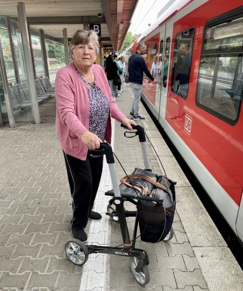 Rosa Hartmann (85) muss ihren Rollator wegen der Arbeiten am Aufzug immer rauf- und runtertragen. © Thomas Gautier