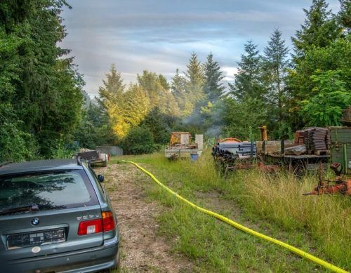 Qualm steigt auf von dem Gartengrundstück, in dem die Polizei am Sonntag die Leiche gefunden hat. © Pia Bayer/dpa