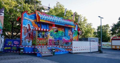 Abgesperrt: Das Fahrgeschäft auf dem Fürther Volksfest im Stadtteil Hardhöhe nach dem Unfall. © Oßwald/News5