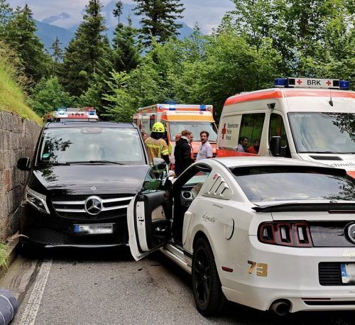 Obersalzberg – Im Rahmen einer Ford-Mustang-Fotorallye kam es am Dienstagabend zu einer Unfallserie am Obersalzberg: Ein 23-jähriger Pole geriet mit seinem Ford Mustang auf der B319 auf die Gegenfahrbahn und rammte den entgegenkommen