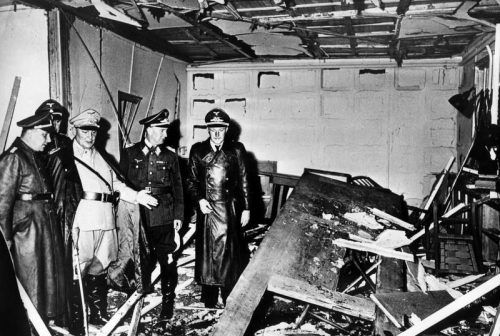Nach dem Attentat: Reichsmarschall Hermann Göring (helle Uniform) und der Chef der „Kanzlei des Führers“, Martin Bo