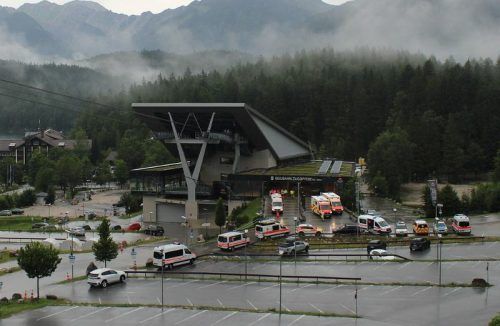 Großeinsatz: An der Seilbahnstation standen am Sonntag elf Einsatzfahrzeuge. © Webcam Zugspitzbahn