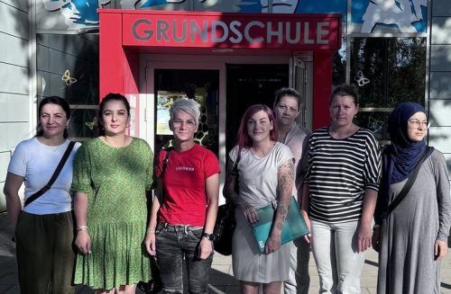 Die Mütter haben am Freitag die Zeugnisse ihrer Buben an der Grundschule Hochbrück abgeholt. © Privat