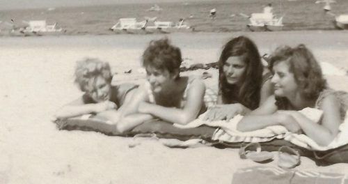 Ihr erster großer Urlaub: Brigitte Renner-Nagelmüller (links) mit den anderen Mädels am Strand von Rimini. © privat (3)
