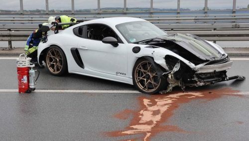 Der Porsche GT4 RS ist völlig demoliert. Zwischen Lengdorf und Dorfen war er aufgrun