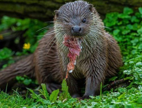 Ein Fischotter verspeist seine Beute. Immer wieder jagen Fischotter in Fischteichen, wodurch sie große wirtschaftliche Schäden verursachen. © IMAGO