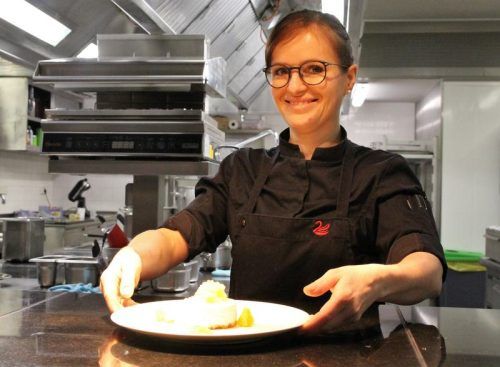 Vor Kurzem kochte Cornelia Fischer noch in den Schwane-Restaurants in Volkach. Nun übernimmt sie das Überfahrt. © Peter Pfannes