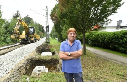 Fertig mit den Nerven: Hans Huber (Name geändert) lebt direkt hinter der Hecke rechts im Bild neben dem Gleis. Der Baulärm raubt ihm den Schlaf. © Marcus Schlaf (2)