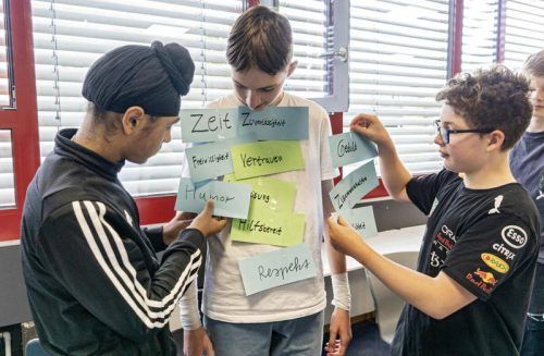 Dem Glück auf die Spur kommen: Schüler der Solgrabenschule in Bad Nauheim machen sich gegenseitig Komplimente, um ihr Selbstvertrauen zu stärken. Bereits 400 Schulen haben Glück als Fach. © epd