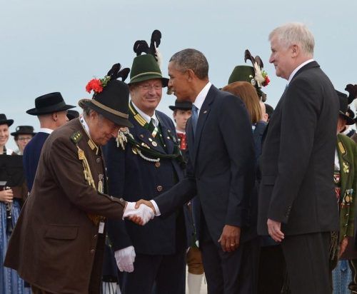 Handschlag mit Mr. President: Karl Steininger begrüßt Barack Obama vor dem G7 Gipfel. © afp