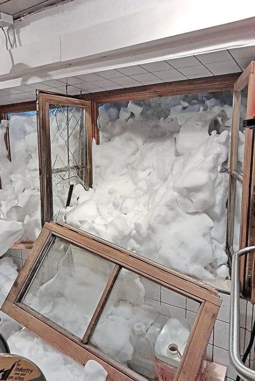 Die Schneemassen drückten durchs Küchenfenster der Toni-Lenz-Hütte. © 7aktuell/Dörfler (2)