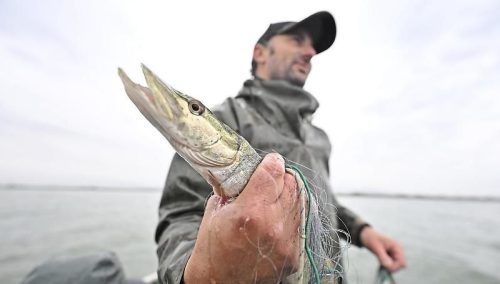 Im Bodensee könnte laut Forschern ein massenhaftes Stichlingssterben stattgefunden haben. Bei einer Bestandsaufnahme seien nur wenige der kleinen stacheligen Fische gefunden worden, sagte der Leiter der Fischereiforschungsstelle, Alexander Brinker. Stattdessen hält der Fischer im Bild einen Hecht in