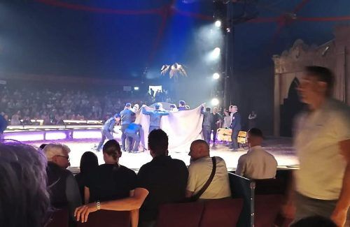 Nach dem Unfall wurde die Artistin sofort abgeschirmt, Ärzte waren im Publikum und halfen.
