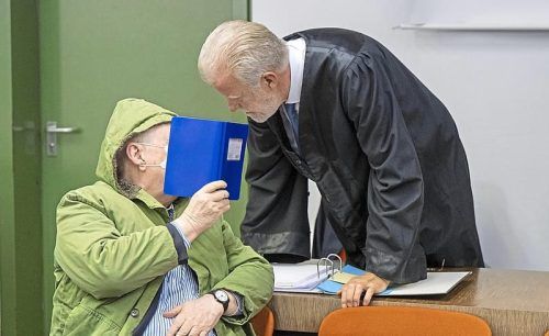 München – Im Rollstuhl lässt sich Helmuth D. (81) in den Gerichtssaal fahren, mit zitternden Fingern zieht er die Kapuze übe