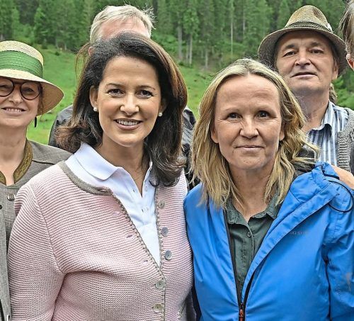 Hilfreicher Termin: Steffi Lemke (r.) im August mit bayerischen Politikern bei der Hauptalmbegehung in der Nähe von Oberammergau. © Uwe Lein/dpa