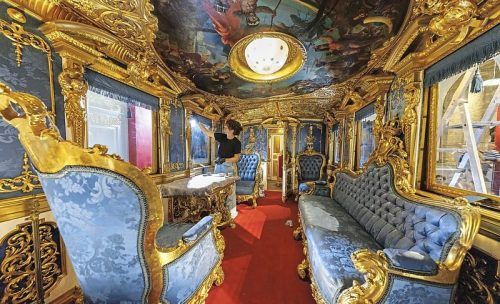 Nürnberg – Auch auf Reisen mochte es der Kini pompös: Bis heute sind Salonwagen und Terrassenwagen seines im Stil des französischen Barocks erbauten bayerischen Hofzugs aus den 1860er-
