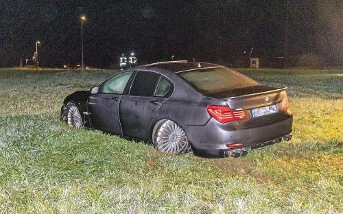 Der BMW landete nach dem Unfall in der Wiese. © WISBERGER