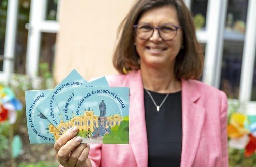 Landtagspräsidentin Ilse Aigner mit dem Buch „Mit König Max zu Besuch im Landtag“. © Lennart Preiss