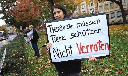 Tierschützer protestierten gestern vor dem Landgericht in Aschaffenburg. © Hildenbrand/dpa