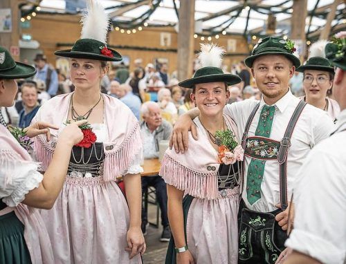 Im Bierzelt wird meist Bairisch gesprochen. Hier ratschen die Trachtler auf der Oidn Wiesn. © Schmidt, imago, dpa (2), baumgart