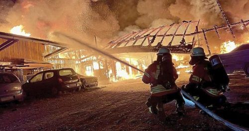 In Au in der Hallertau hat ein Großbrand am Montagabend eine landwirtschaftliche Halle zerstört. 170 Einsatzkräfte waren vor Ort. Die Halle stand bereits in Flammen, als die ersten Feuerwehren eintrafen. Das Gebäude war früher für die Hopfenernte benutzt worden, diente aber nun offenbar als Lager- u