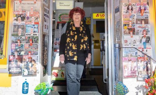 Sechs Tage die Woche – seit 50 Jahren: Rudolfine Schroeren vor ihrem Schreibwarengeschäft in Utting. © Andrea Jaksch