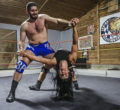 Schmerz und Show: Sandra Palic und George Badur im Ring des Erdinger Wrestling Clubs. © Ch