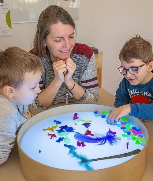 Markt Schwaben – Marco liebt die Vormittage mit Lichttisch. Mit vier anderen Vorschulkindern sitzt der Fünfjährige nach vorne gebeugt vor der großen Platte, die die Erzieherin Ildiko Om