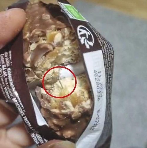 Der Schokoriegel mit der Nadel aus Kirchseeon. © privat