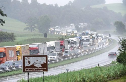Überlastet: Die A8 bei Frasdorf soll dreispurig werden. Es fehlt Geld, außerdem wird geklagt. © Balk/dpa