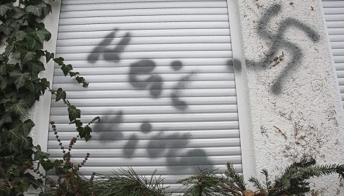 Winter 2024: Nazi-Schmierereien in Geretsried, Kreis Bad Tölz-Wolfratshausen. © Sabine Hermsdorf-Hiss
