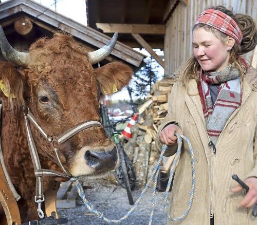 Ramona Bertl hat zwei Arbeitskühe ausgebildet. Die Tiere ziehen Kutschen und helfen bei der Heuernte. In früheren Zeiten war das normal – heute ist diese Tradition fast ausgestorben. Bertl hat sie neu belebt. Anno dazumal waren Kühe wichtige Zugtiere. Gedul