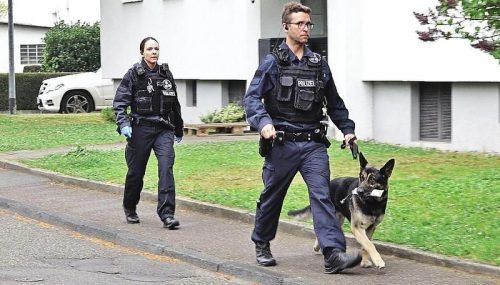 Zwei Polizisten beim Einsatz in Waiblingen. © Kevin Lermer