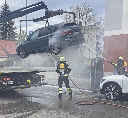 München – Bei diesem Einsatz war die Kreativität der Feuerwehr gefragt: Als Freitagmittag die Batterien eines E-Autos in Moosach in Brand gerieten, schien die Lage erst relativ ruhig. Es war an der Leipziger Straße kein offenes Feuer zu