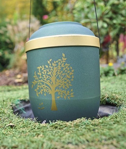 Eine Urne auf einem Friedhof. © dpa