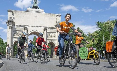 Vor dem Siegestor fahren Radler über die Leopoldstraße. 16 000 Menschen waren gestern bei der ADFC-Radsternfahrt dabei, die durch weite Teile Münc