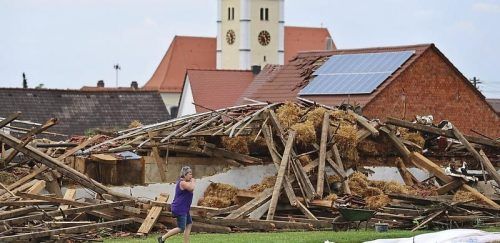 Fassungslosigkeit: Eine Frau steht im Mai 2015 vor einem völlig zerstörten Gebäude im Affinger Ortsteil Gebenhofen. © Karl-Josef Hildenbrand/dpa