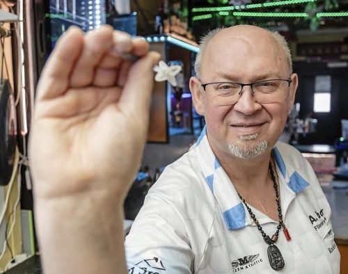 In diesem Schminktäschchen verstaut Carol Zehetmeier ihre Pfeile. Jeder Dartspieler hat hier seine eigene Präferenz.