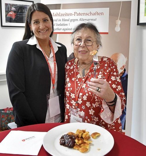 Kaiserschmarrn ist eines ihrer Lieblingsgerichte: Hannelore Rath nutzt den Menüservice der Malteser. Daniela Hugo koordiniert das Angebot. © Caritas