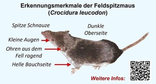 Die wichtigsten Merkmale der Feldspitzmaus. © Landesamt für Gesundheit
