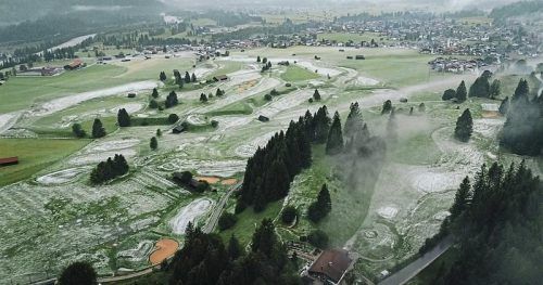 Hagelmassen über dem Golfplatz Karwendel bei Wallgau vom Dienstagabend. © Merzbach/NEWS5